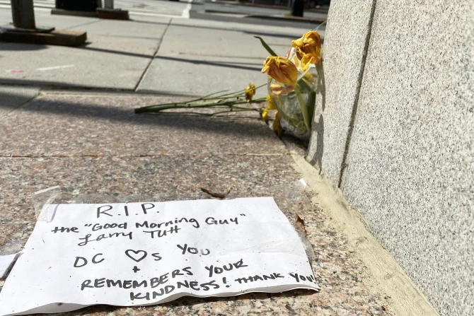 On Friday, a week after his death, the Catholic Information Center (CIC) gave away red whistles as reminders to pray for Tutt following a memorial Mass for the D.C. hero. Located steps away from where Tutt used to sit, the CIC houses a Catholic bookstore and chapel — the chapel where Tutt once attended Mass.