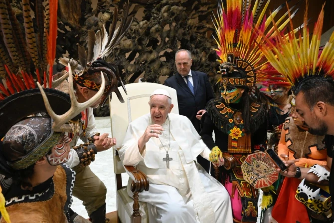 “The conceit of stopping time — of wanting eternal youth, unlimited well-being, absolute power — is not only impossible, it is delusional,” Pope Francis said in Vatican City’s Paul VI Hall.