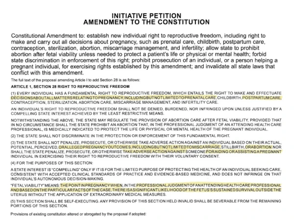 Its 92-word summary says it would establish a “new individual right to reproductive freedom, including [the] right to make and carry out all decisions about pregnancy,” including abortion. The measure would invalidate all state laws that conflict with the amendment.