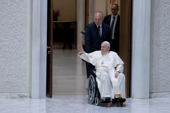 The new topic on discernment replaces the pope’s 18-week-long cycle of catechesis on old age. The pope has used the combination of a wheelchair and a cane when greeting the crowd during his general audiences since last May.