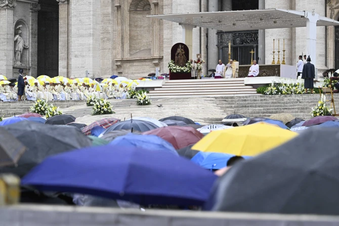 Cardinals stood in the rain under yellow and white umbrellas as Pope Francis read out the declaration that Pope John Paul I can now be venerated locally on his feast day on Aug. 26.