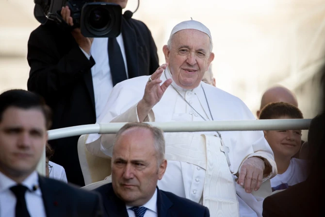 The pope opened and closed his encounter with the public by riding the popemobile around the square. The audience marked his second week of catechesis on the theme of “Discernment.”