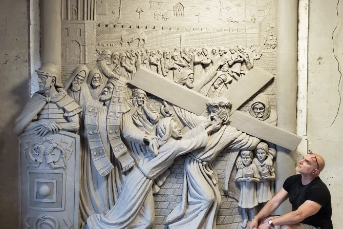 His new creation, once finished, will be a life-size set of the 14 Stations of the Cross — scenes depicting Christ’s journey from being condemned to death to his burial — placed right next to Disney World. The faithful will be able to encounter the 12-foot-tall, 11-foot-wide sculptures at the Basilica of Our Lady Queen of the Universe in Orlando, Florida.