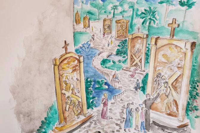 The stations — which combine mural painting and sculpture — will offer visitors “visual doorways into a Catholic-Christian experience,” he said.