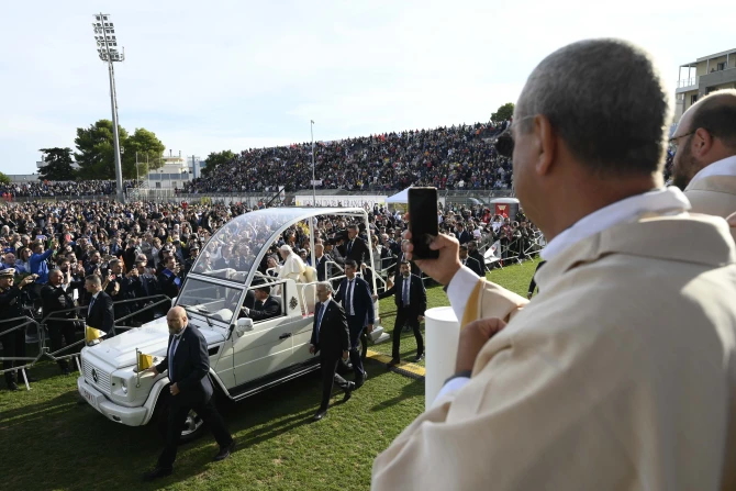 Pope Francis flew early Sunday morning to the southern Italian city to offer the closing Mass for the congress. He departed by plane rather than by helicopter as scheduled due to stormy weather conditions in Rome and arrived to a warm welcome in Matera as his popemobile passed through a cheering crowd.
