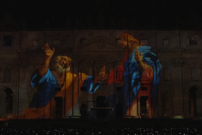 The video display will be projected on the facade of St. Peter’s Basilica every 15 minutes between 9 p.m. and 11 p.m. each night through Oct. 16.