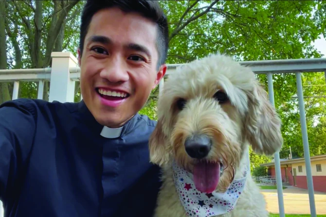 During the COVID-19 pandemic lockdown of 2020, Father Allan Phan of Sacred Heart Church/St. James Parish in Crete, Nebraska, began creating daily online reflections to offer spiritual nourishment for parishioners at St. Vincent de Paul Parish in Seward, where he was serving at the time. After a while of making the videos on his own, he had the inspiration to introduce his pet goldendoodle, Daisy, into his reflections.