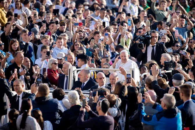 “Desire is not the craving of the moment. No. The Italian word ‘desiderio’ comes from a very beautiful Latin term, desidus, literally ‘the lack of the star,’” Pope Francis said in St. Peter’s Square on Oct. 12.