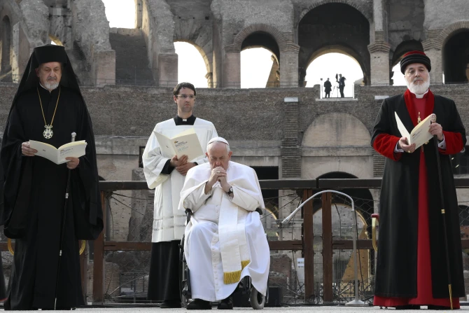 The final night of the event began with an ecumenical prayer for peace with Christian leaders inside the Colosseum.