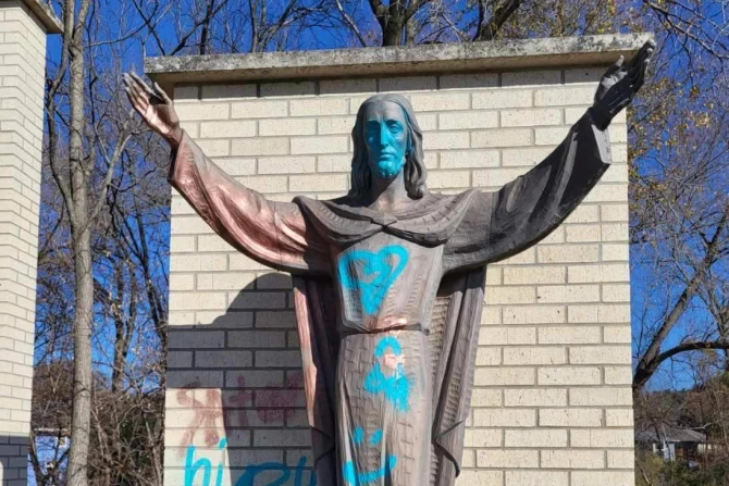 Steven Flynn, director of the diocese’s Calvary Cemetery in Rochester, told CNA that five memorial walls in the cemetery were heavily covered with blue and brown graffiti. He also said that two grave markers, a statue of Christ, and a cross were covered in graffiti. The cleanup and repair costs could go as high as $8,000, Flynn estimated.