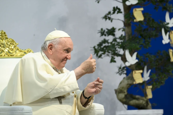 “As pope, I want to tell you: the Church is with you and needs each one of you very much, so that we can be renewed, explore new paths, experiment with new languages, and become more joyful and hospitable. Never lose the courage to dream big and to live life to the full! Adopt the culture of care and spread it. Become champions of fraternity. Face life’s challenges by letting yourselves be guided by God’s faithful creativity and by good counselors,” he said.