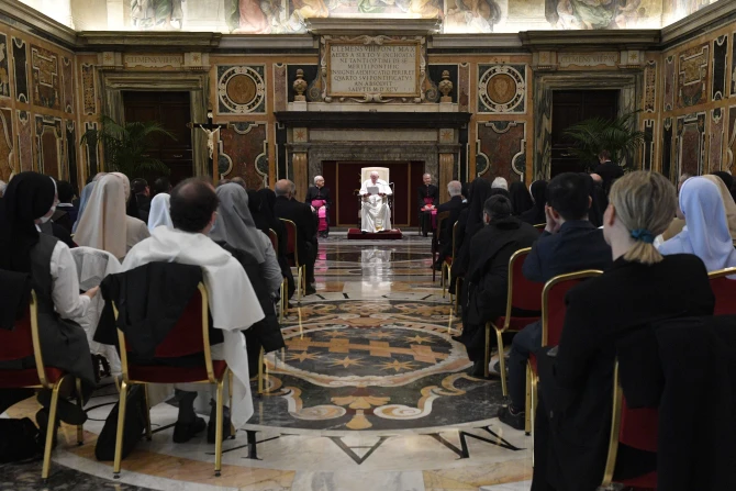 Addressing representatives of the Claretianum Institute of the Theology of the Consecrated Life on the occasion of its 50th anniversary at the Vatican on Nov. 7, the pontiff asked the religious to pray with him to God: “You who feed us with tenderness, deliver us from self-referentiality, from the diabolical deception of polarizations, from ‘isms.’”