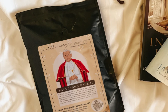 The different coffee flavors are also inspired by the saint on their bag. For example, Little Flower Cinnamon Hazelnut is said to have a floral smell — hence St. Thérèse of Lisieux, the Little Flower. Our Lady of Mount Carmel is a medium roast with a sweet, buttery caramel flavor. Other roasts include Holy Family Hazelnut; Love and Roastsponsibility St. John Paul II Medium Roast; Early Church, Early Morning Saints Peter and Paul Roast; and Monte Caffino Benedictine Breakfast Blend.