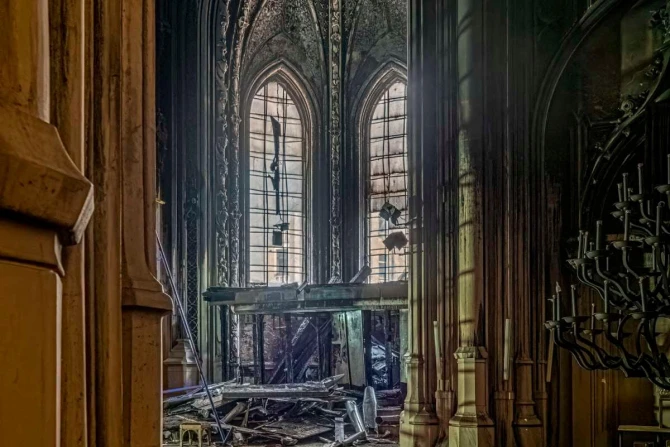 The image of Our Lady of the Gate of Dawn was hanging right on the organ in the church of St. Nicholas in the Ukrainian capital when the fire started in September 2021.