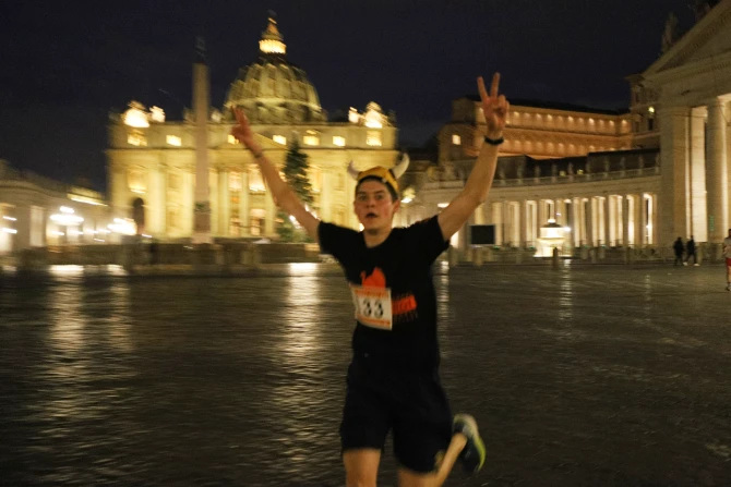 “I think that this race is a great metaphor for our Catholic faith because we run together, we run to Christ, and we do it in the company of St. Peter and his successors. And that is what this race is about—running around the Vatican and being together as one family of faith,” Powers said.