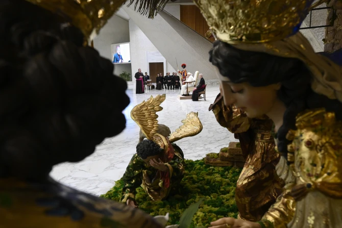 The Guatemalan Nativity scene will remain on display in Paul VI Hall until Jan. 8, when the Church celebrates the feast of the Baptism of the Lord.