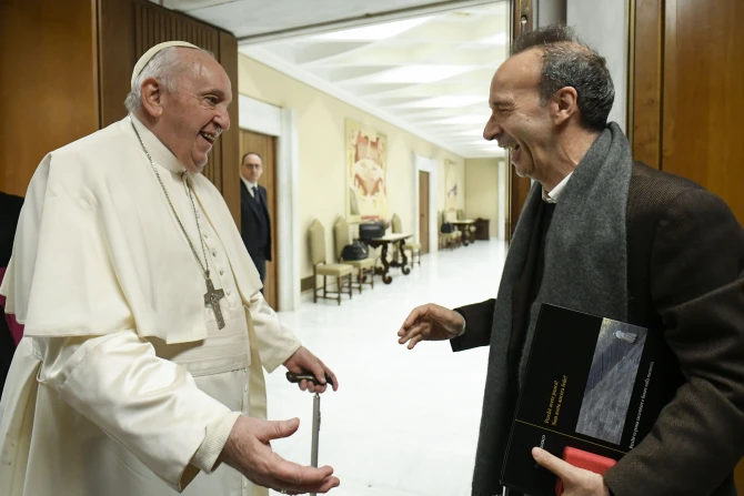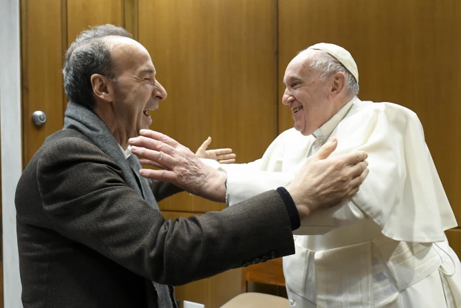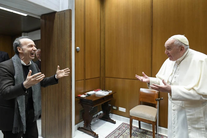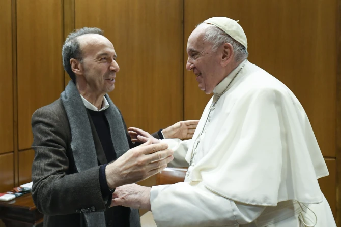 Benigni, best known for his Oscar-winning film “Life is Beautiful,” met privately with the pope to tell him about his latest project, a new show about St. Francis of Assisi.