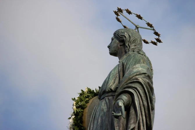 The statue of the Immaculate Conception sits atop a nearly 40-foot-high column.