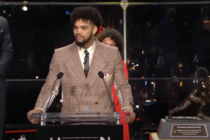 When Caleb Williams stood up to the podium accept the Heisman Trophy Saturday, the University of Southern California (USC) quarterback gave credit to his Catholic education for showing him how to be a “man for others.”