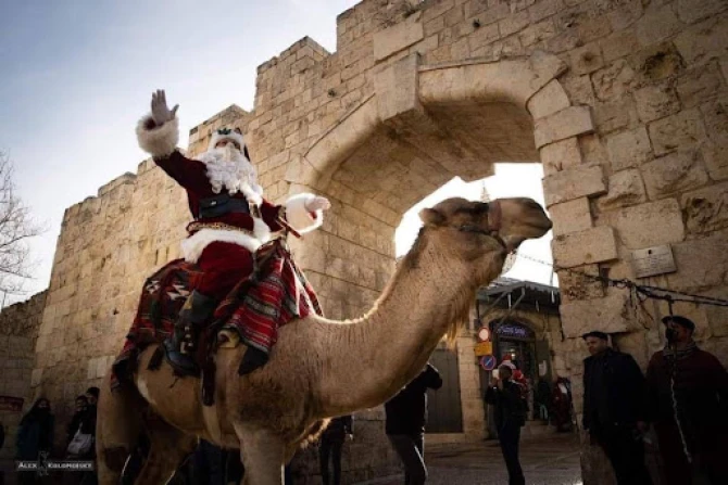 A few years ago, Kassisieh decided to not only dress as Santa Claus but also to enter Jerusalem on the back of a camel as a reminder of the entrance of the three Magi, or wise men, into that ancient city on their way to the Christ Child.