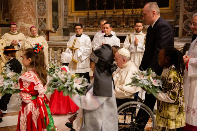 Pope Francis celebrated the Solemnity of the Nativity of the Lord with Mass during the night, held in St. Peter’s Basilica at 7:30 p.m. on Dec. 24.