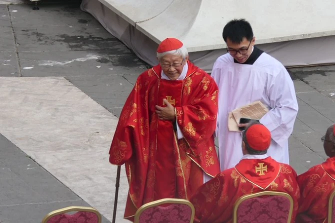 The 90-year-old cardinal from Hong Kong arrived in St. Peter’s Square dressed in red and walking with a cane to concelebrate the funeral Mass on Jan. 5.