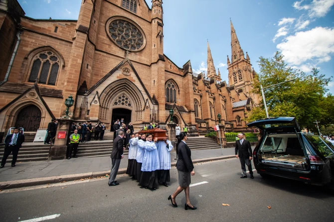 Archbishop Anthony Fisher of Sydney celebrated the Pontifical Mass of Christian Burial at Sydney’s St. Mary’s Cathedral. The four-hour liturgy included a specially composed offertory motet by Sir James MacMillan based on the cardinal’s motto “Be Not Afraid” and the text of Wisdom 3:1–4.