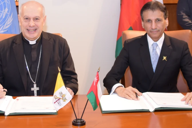 The agreement was signed on behalf of the Holy See by Archbishop Gabriele Caccia, Holy See Permanent Observer to the United Nations in New York, and for the Sultanate of Oman by H.E. Dr. Mohammed Al-Hassan, Ambassador Extraordinary and Plenipotentiary of the Sultanate of Oman to the United Nations.