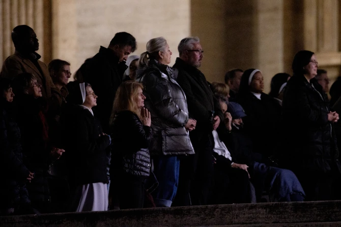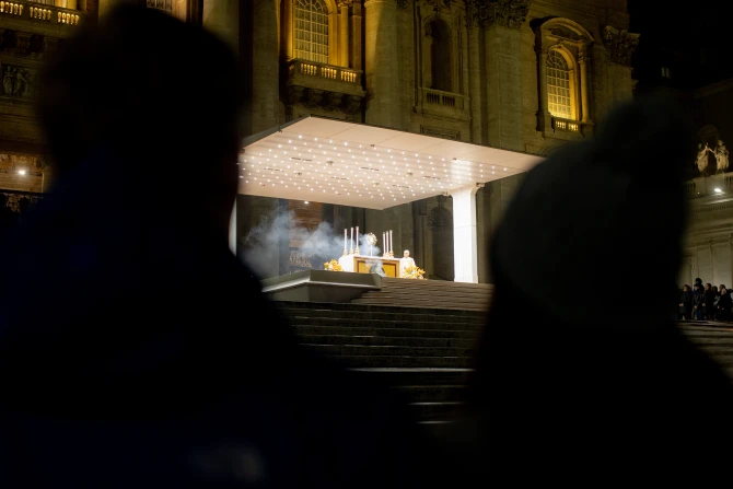 Benediction during the first monthly eucharistic adoration in front of St. Peter's Basilica March 14, 2023. Daniel Ibanez/CNA