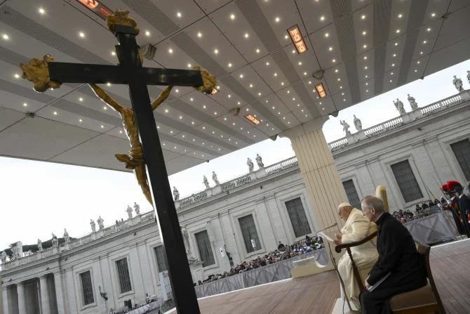 Speaking in St. Peter’s Square on a chilly spring morning, Pope Francis also highlighted how Jesus did not cover up or hide his wounds when he was nailed to the cross.