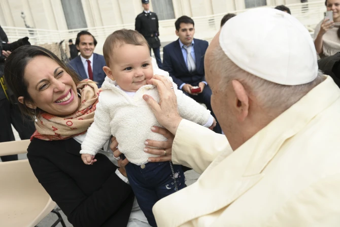 In his last public audience Wednesday before the start of the Paschal Triduum, the pope noted how many people today who walk down the street appear sad, focused “only on their cell phones, but without peace, without hope.”
