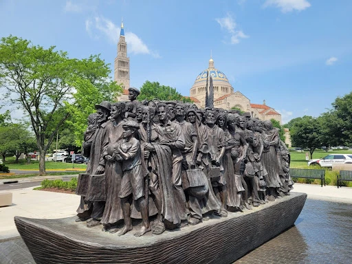 A second casting of Schmalz’s “Angels Unawares,” pictured above, is also on display on Catholic University’s campus.