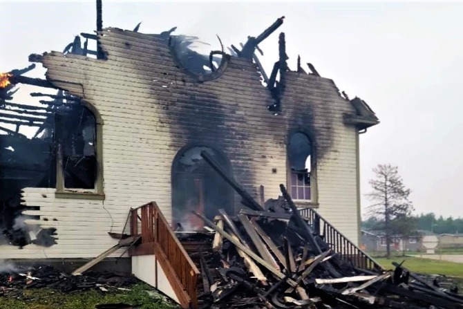 Pettipas said the church was “irreparably destroyed” and marks “a sad moment for the many people who have fond memories of this church. Frequent Masses, baptisms, funerals, confirmations, and confessions took place between these walls, which are now charred and rendered as rubbish.”