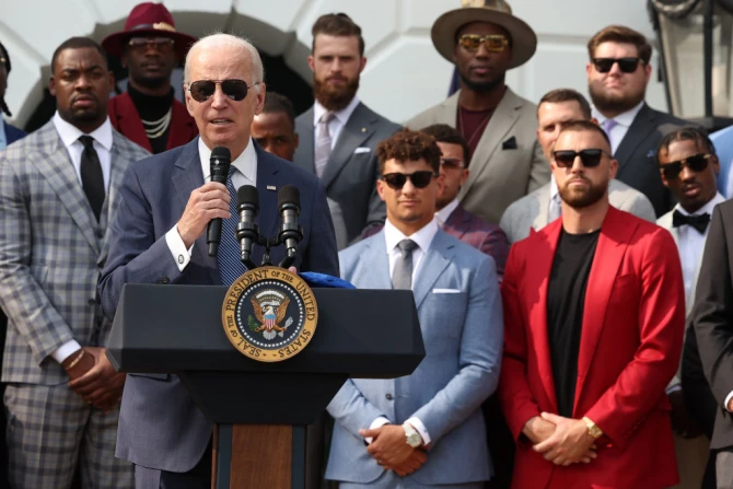 Biden gave a speech at the event praising the Super Bowl champions not only for their football skills but also for using their platforms for good.