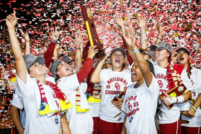 Teammate Jayda Coleman said she agreed “1,000%” and shared how after winning the Women’s College World Series her freshman year she was happy but didn’t feel joy.