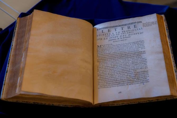 Father Mauro Mantovani, the prefect of the Vatican Library, also showed journalists the Vatican’s copy of a Latin translation of the “Provincial Letters,” published in 1658. The book was translated by Pierre Nicole, a well-known French Jansenist at the time.