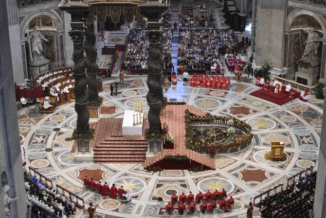 During the Mass, the pope blessed the pallia that will soon be placed on the shoulders of the 32 archbishops appointed this year across the world.