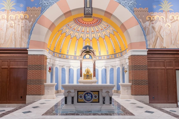 — Features a triumphal arch over the sanctuary as the artistic centerpiece of the church, depicting the heavenly liturgy by illustrating the meeting of heaven and earth in eternity that is anticipated at the end of time.