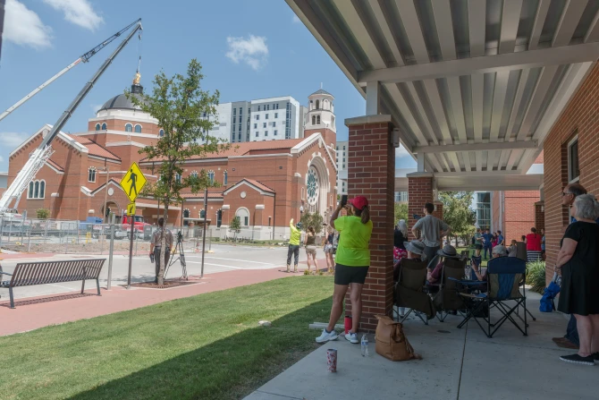 The community is “over the moon” in excitement about the new church, Lenzen said, and she noted how many had toured the church during construction and attended significant construction events, such as the installation of the exterior Our Lady of Victory statue.