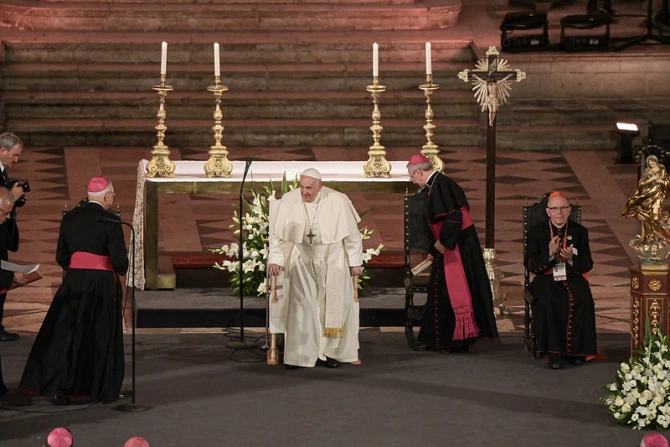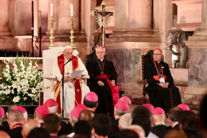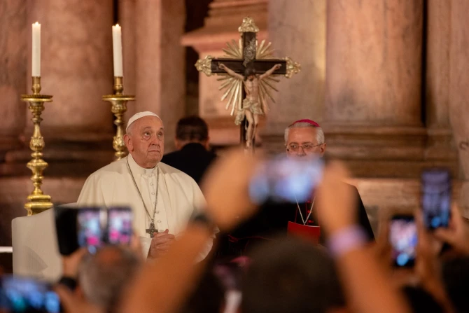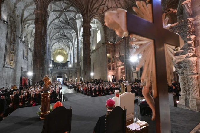 The pope delivered the encouraging message in his homily for Wednesday vespers, or evening prayer, to bishops, priests, deacons, consecrated persons, seminarians, and pastoral workers gathered in the church of Lisbon’s iconic Mosterio dos Jerónimos, a former monastery now used as a public ceremony hall and museum space.