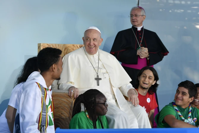 “Dear friends, there is a happiness that Jesus has prepared for you, for each of you: It does not come from accumulating things but from putting your life on the line. The Lord says also to each of you: ‘Go, for there is a world that needs what you, and you alone, can give it,” the pope said in Lisbon’s Eduardo VII Park on the night of Aug. 3.