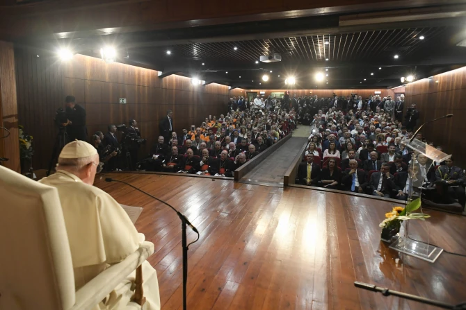 Stating that it was difficult for him to continue reading his prepared text, the Holy Father delivered the impromptu remarks after hearing testimonials from ministry representatives, including a service that helps expectant mothers and their babies, a community formed to aid those suffering from cancer, and an “all-round” charity center.