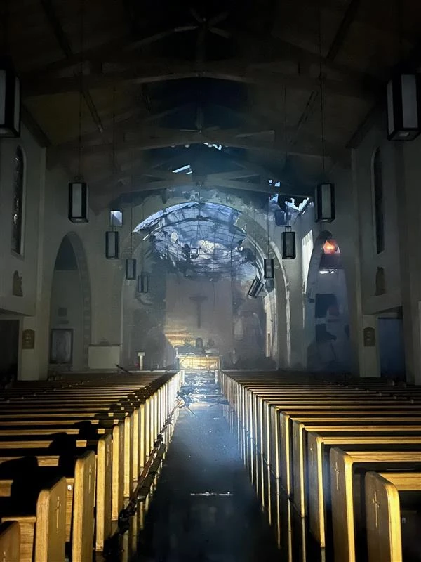 First responders feared it would spread to the surrounding buildings, such as the parish school, but they were able to contain the flames to the sanctuary itself.