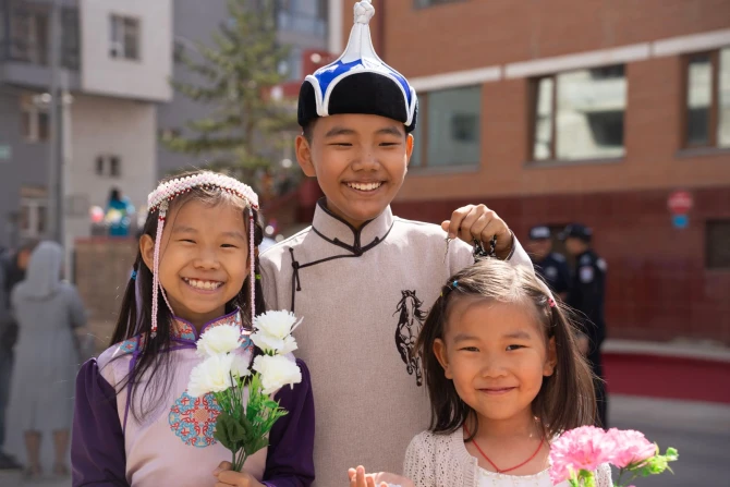 Schoolchildren eagerly wait for the pope’s arrival outside of the apostolic prefecture on Sept. 1, 2023, in Ulaanbaatar, Mongolia, where Pope Francis will be staying for the duration of his four-day visit to the country. | Credit: Colm Flynn/EWTN News