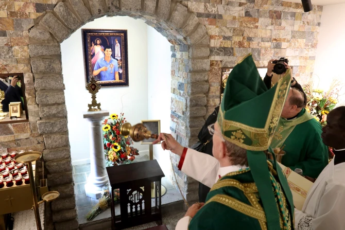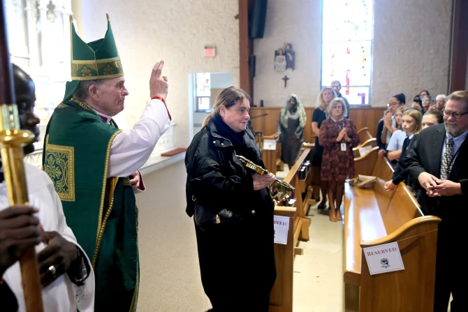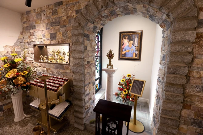 The faith community of St. Dominic Parish in Brick, New Jersey, celebrated the life of Blessed Carlo Acutis on Oct. 1 with a very special guest among them — Acutis’ mother, Antonia Salzano. After the jubilant Mass concluded, Salzano took the relic of her son from the hands of Bishop David O’Connell of the Diocese of Trenton, and together they processed to the narthex, where a new shrine to Acutis was blessed.