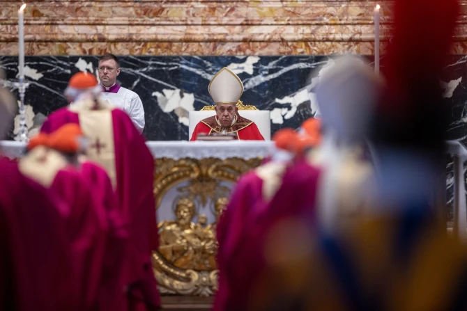 “Benedict XVI, whom we remember today, together with the cardinals and bishops who died in the past year, wrote in his first encyclical that the program of Jesus is ‘a heart that sees,’” Francis said, quoting from Deus Caritas Est (“God is Love”).