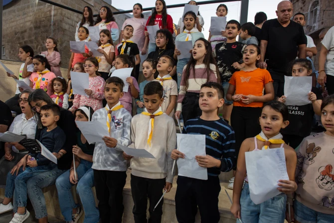 The prayer vigil was introduced by Father Ibrahim Faltas, vicar of the Custody of the Holy Land and director of the Terra Sancta Schools. A series of liturgical prayers followed, and the Gospel of the Beatitudes was read. “You are our freedom, you dry our tears,” the children’s choir sang.