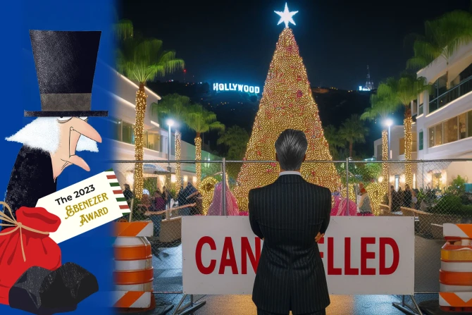 California Democratic Gov. Gavin Newsom received this year’s “Ebenezer Award” for being “the year’s biggest Scrooge” after canceling the state’s annual Christmas tree lighting festival and choosing to skip a menorah lighting ceremony.