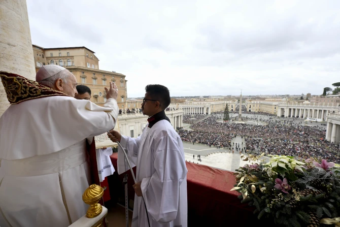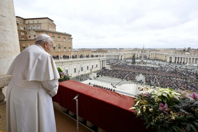 Delivering his annual “urbi et orbi” Christmas blessing while seated on the central balcony of St. Peter’s Basilica, the pope contrasted the “endless peace” that Christ brings with the work of the “prince of this world,” who “sows the seeds of death” and “plots against the Lord.”