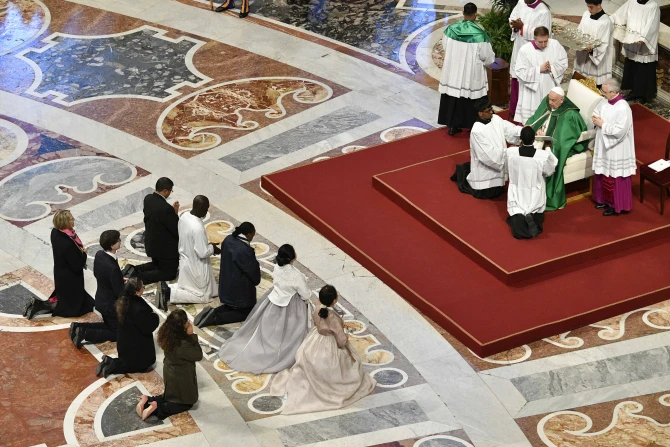 During the Mass, Pope Francis formally conferred the ministries of lector and catechist upon eight women and three men from South Korea, Chad, Jamaica, Brazil, Bolivia, Germany, and Trinidad and Tobago.